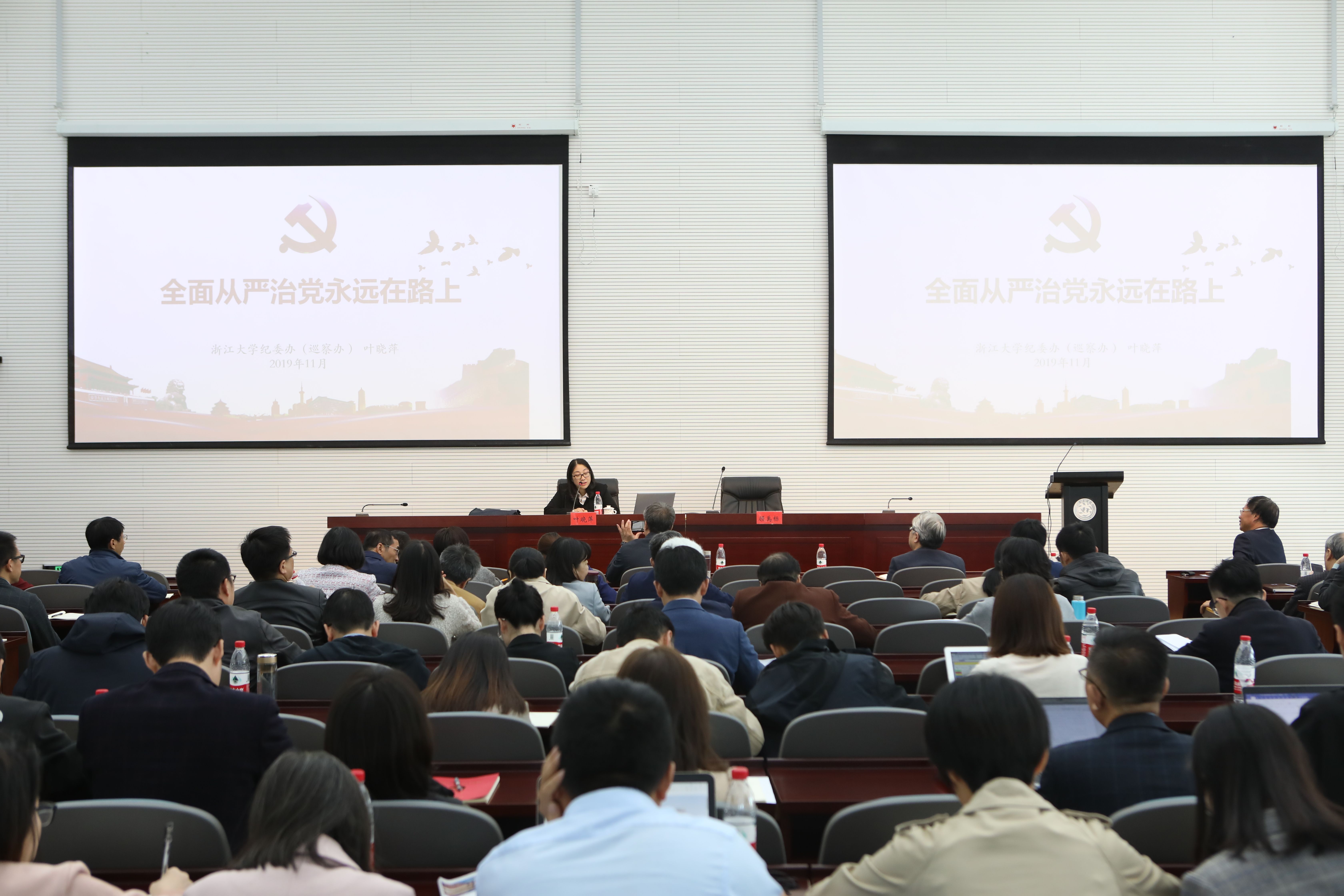 为进一步推进“不忘初心、牢记使命”主题教育深入开展,确保主题教育取得实效,进一步加强学校党风廉政建设,11月15日上午,学校邀请浙江大学纪委副书记叶晓萍在学术交流中心作《全面从严治党永远在路上》专题辅导报告。学校领导班子,全体中层干部、科级干部、全体支部书记以及辅导员听取报告。学校党委副书记、纪委书记顾禹标主持报告会。