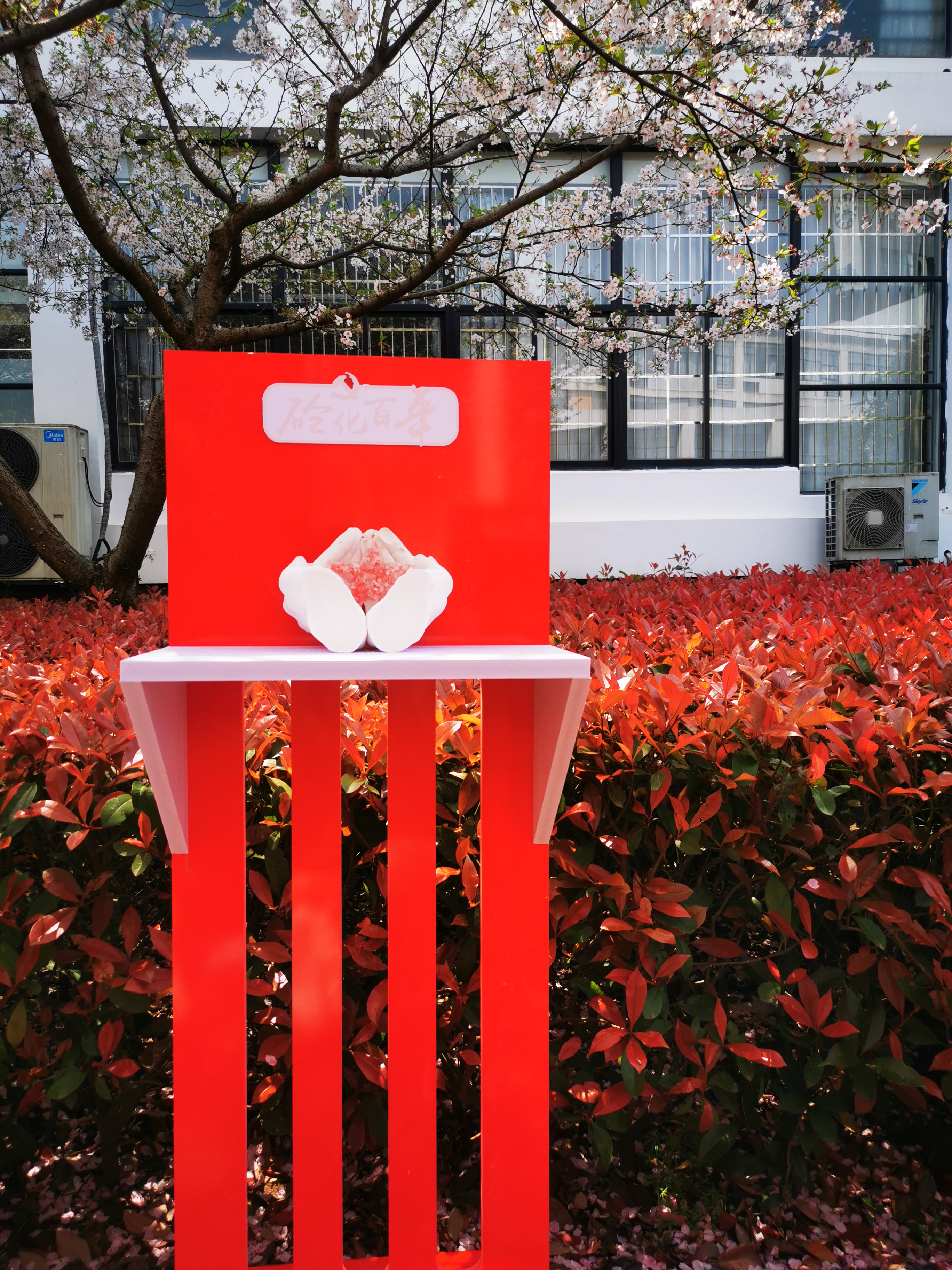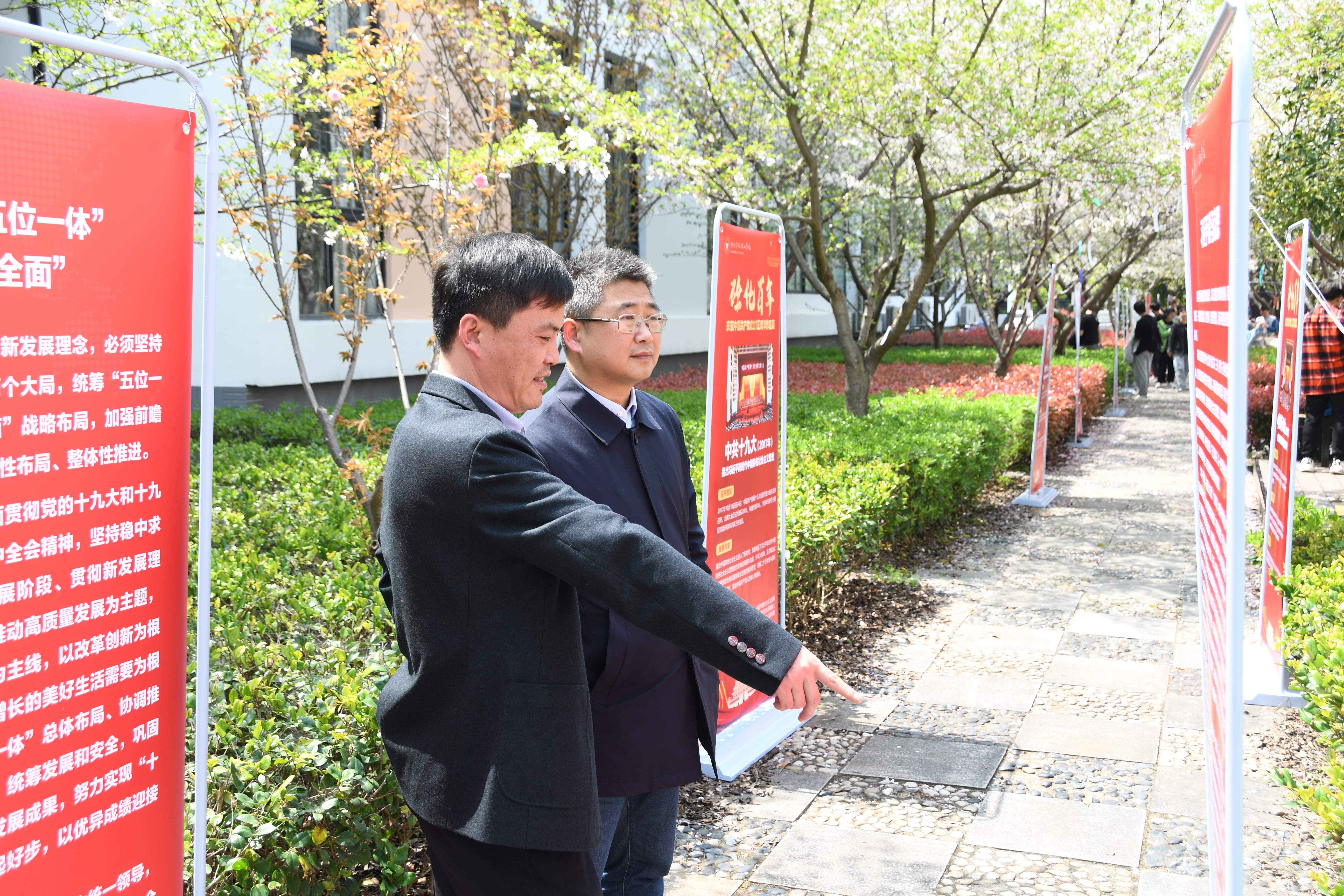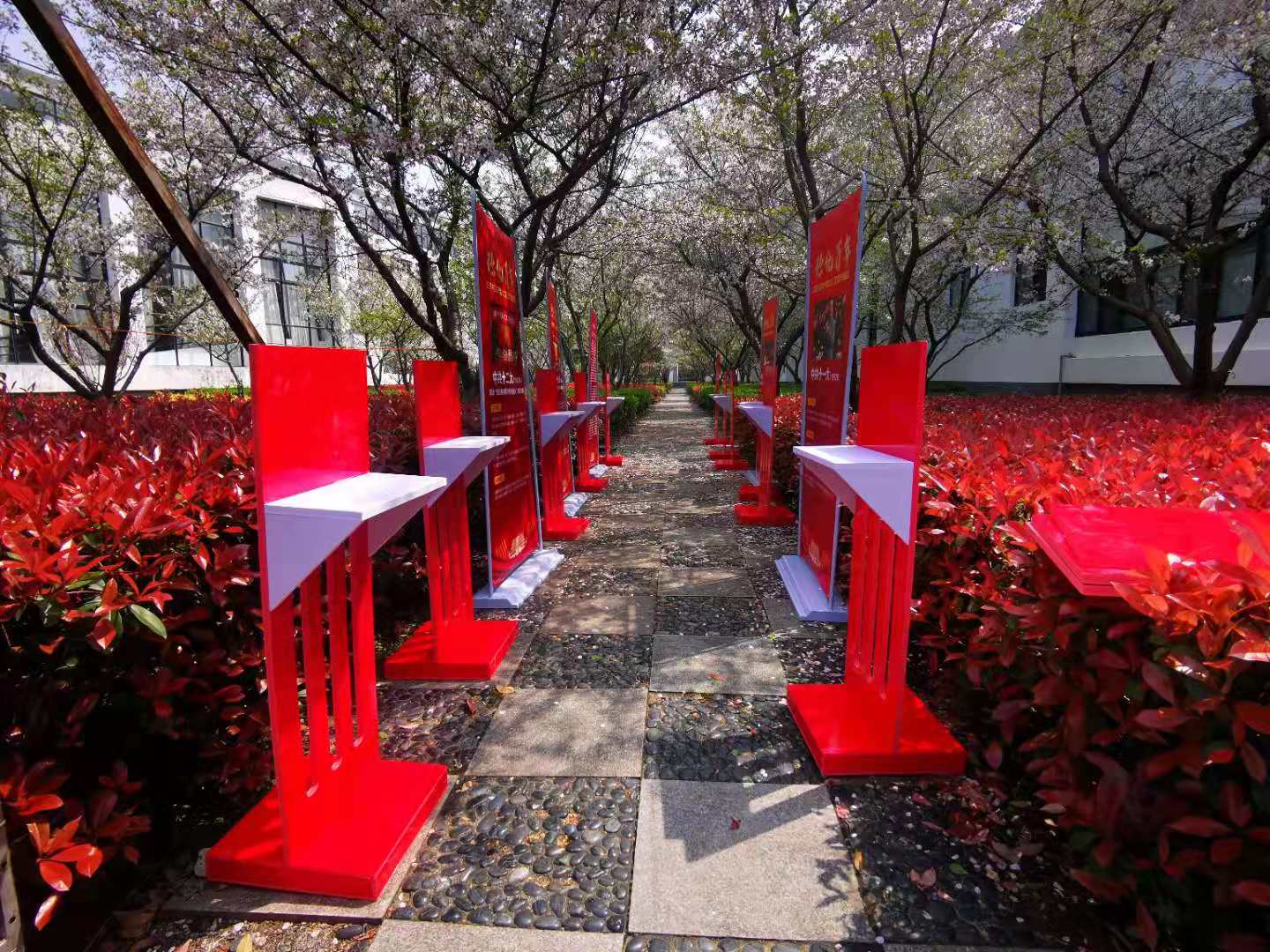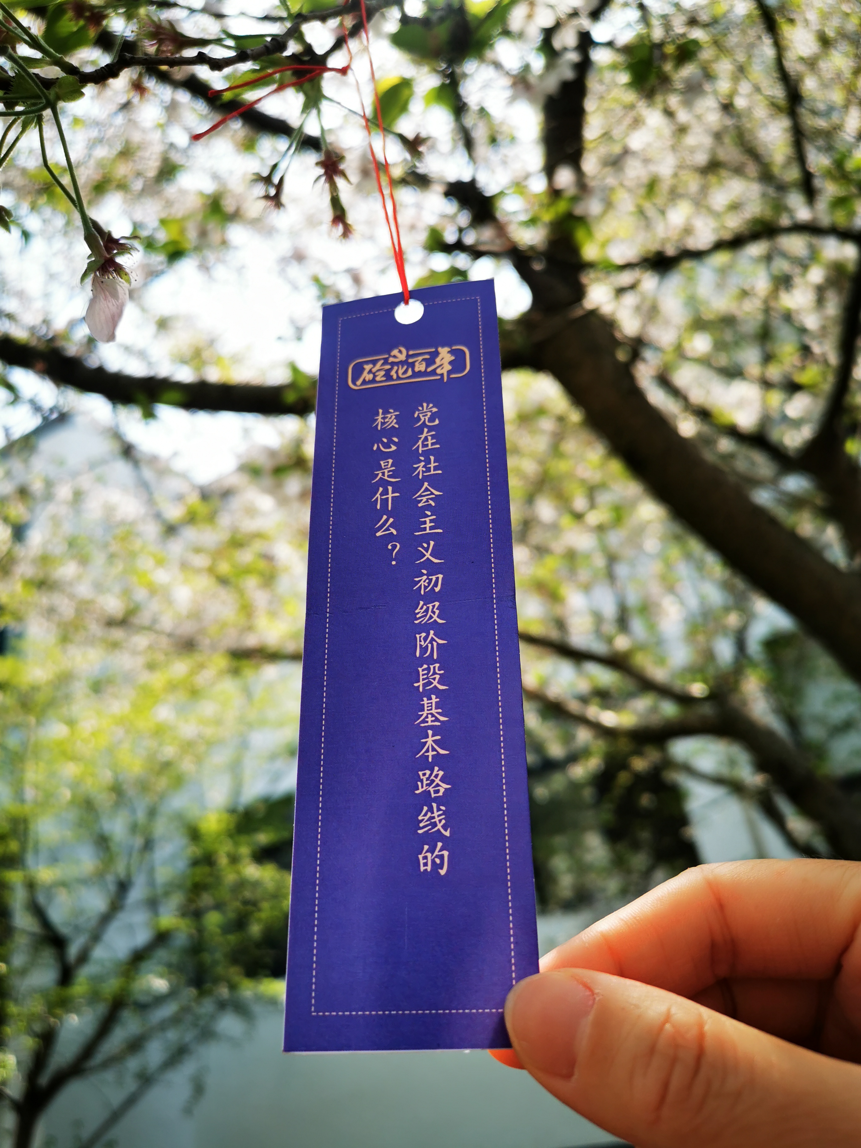 为了增加师生参与度和互动性,展览还设置了党的历届代表大会简介、党史知识问答和“我对党的深情告白”送祝福环节。100道党史知识题悬挂在盛放的樱花树下,供师生们竞答,师生们还可以在书签上写下自己对党的深情告白和美好祝愿,挂上枝头,来表达自己对党的热爱。展览会场全程播放由人民日报新媒体发布的百年主题MV改编版《少年》。
