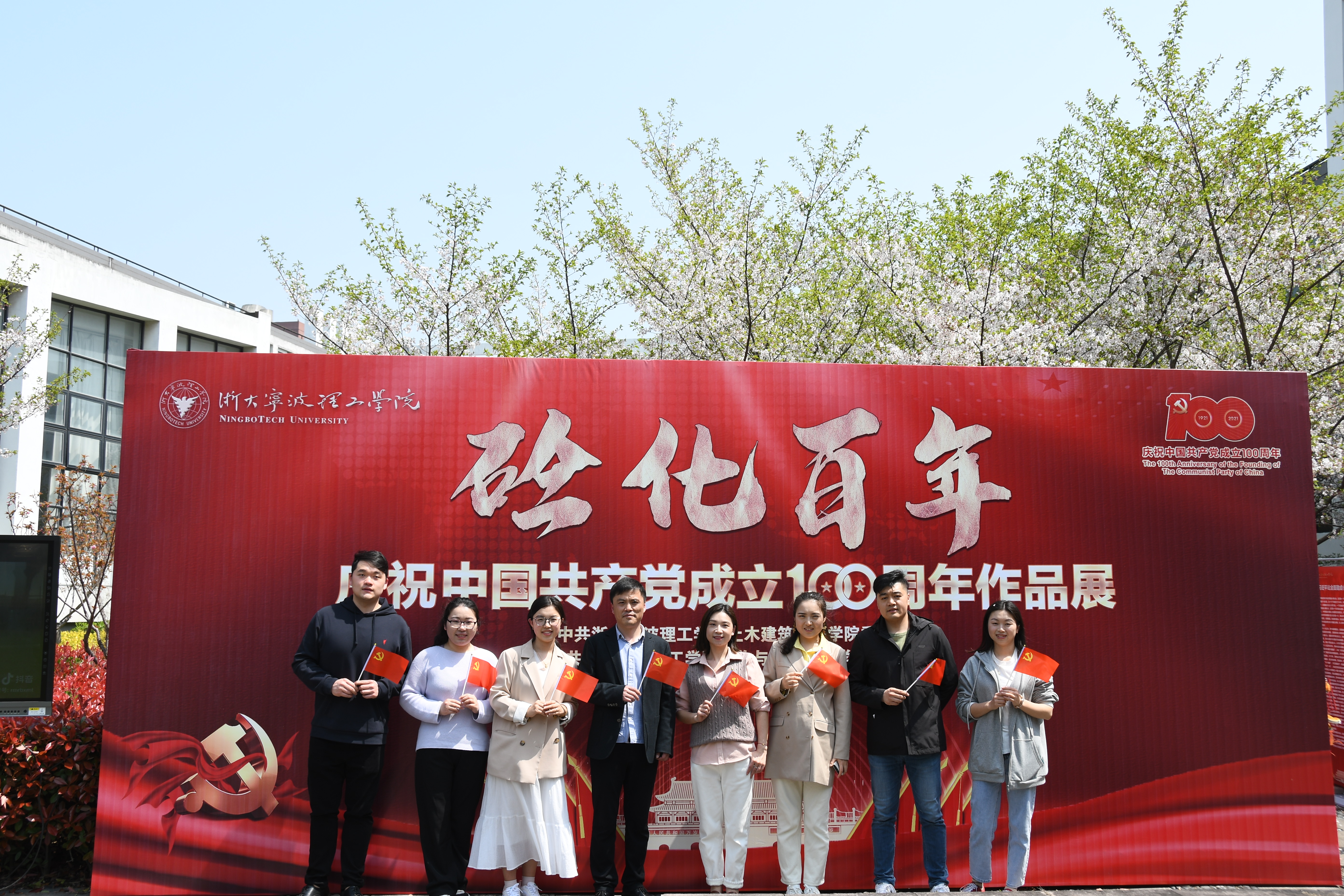 2021年3月29日,浙大宁波理工学院土建学院、生化学院党委联合举办庆祝中国共产党成立100周年作品展。两个学院的党政领导班子和全体师生党员、入党积极分子参观了本次展览。