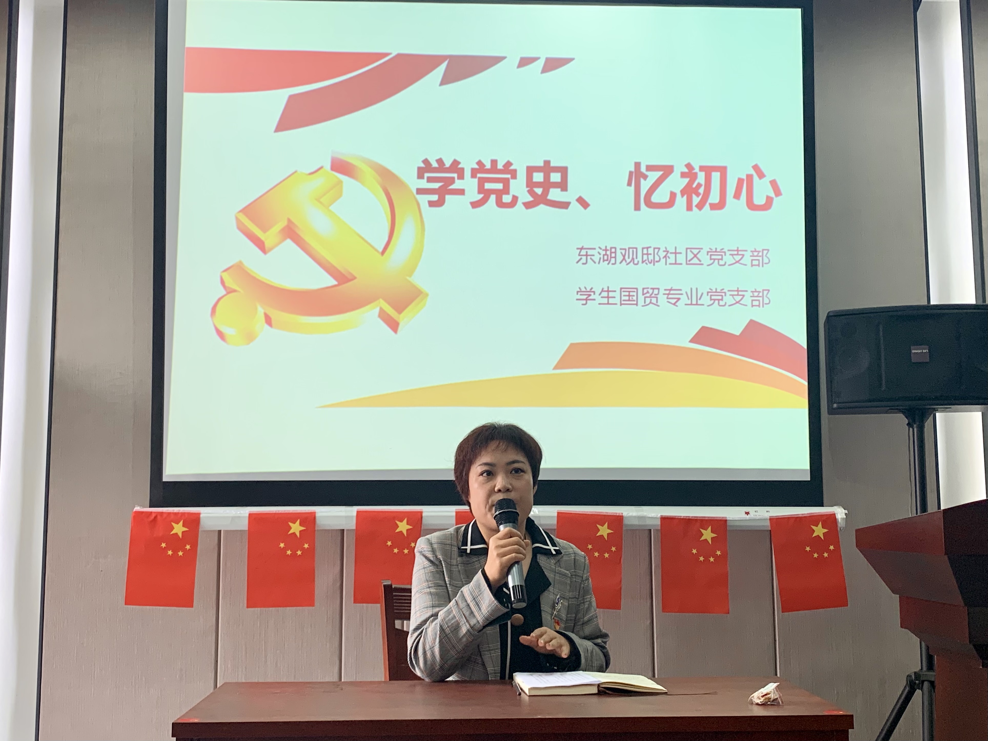 东湖观邸社区党支部支委围绕“学党史·忆初心”主题给学生党员们上了生动的一课,国贸学生党员们纷纷回顾中国共产党的百年征程,讲述自己入党的初心。在学党史知识问答环节,党员们主动举手抢答,现场气氛热烈。最后,全体成员起立,手举红旗共唱经典红歌《没有共产党就没有新中国》,在气势磅礴的歌声中结束本次活动。