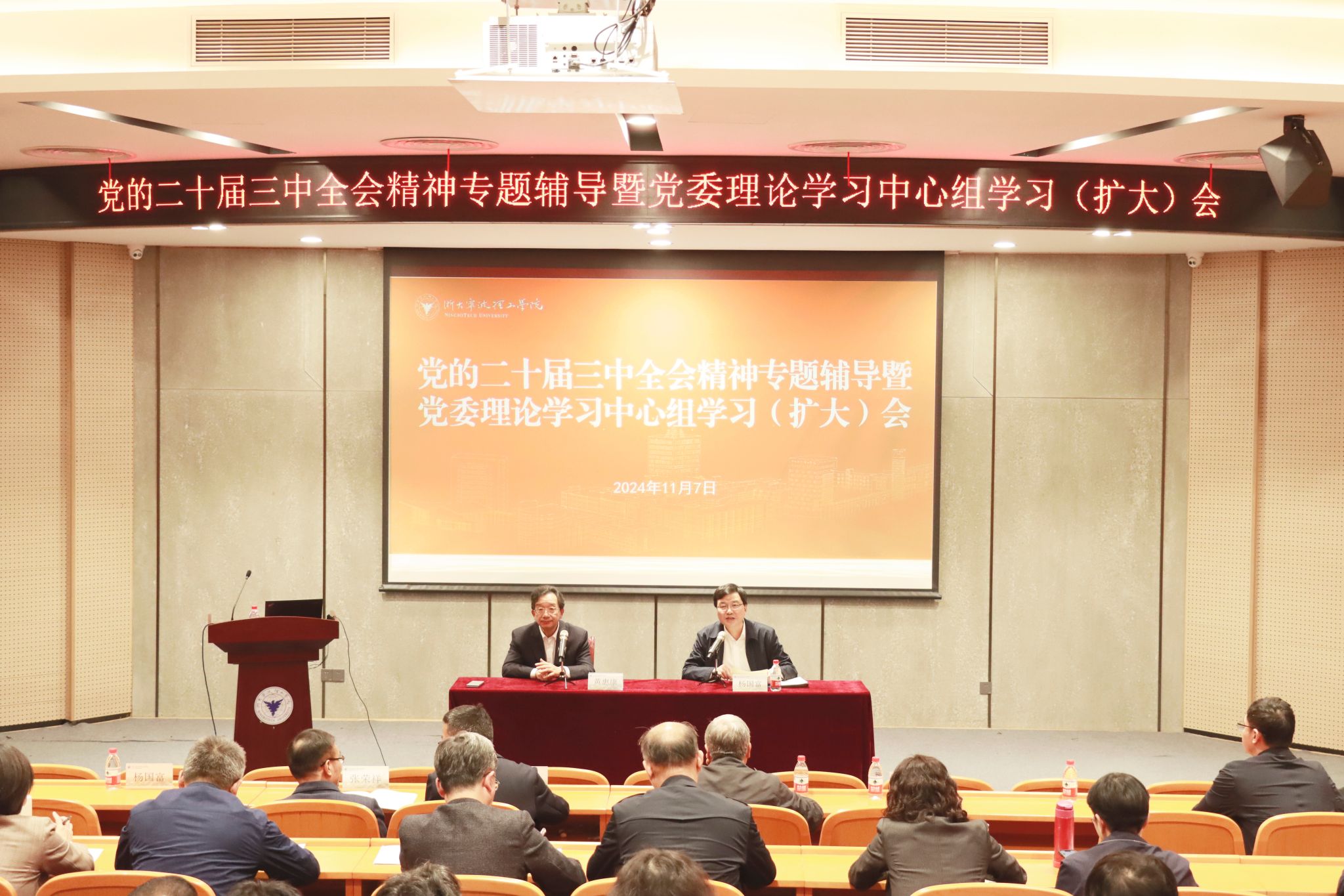 党委理论学习中心组成员、全体中层干部、统战团体负责人参会。此次专题报告会也是学校党委理论学习中心组学习扩大会。