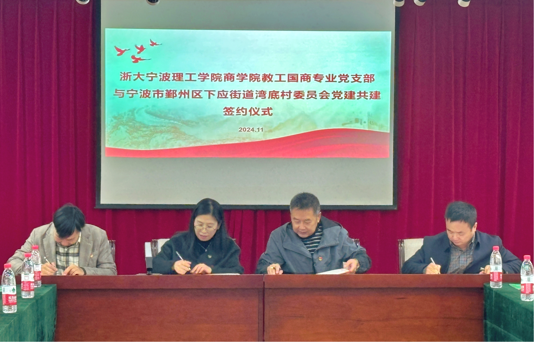 11月27日下午,商学院教工国商专业党支部、学生工商管理党支部和中国民主建国会浙大宁波理工学院支部与宁波市鄞州区下应街道湾底村党委共同签署了党建联建框架协议。协议的签署意味着校地党建共同体建设的创新实践正式开启。