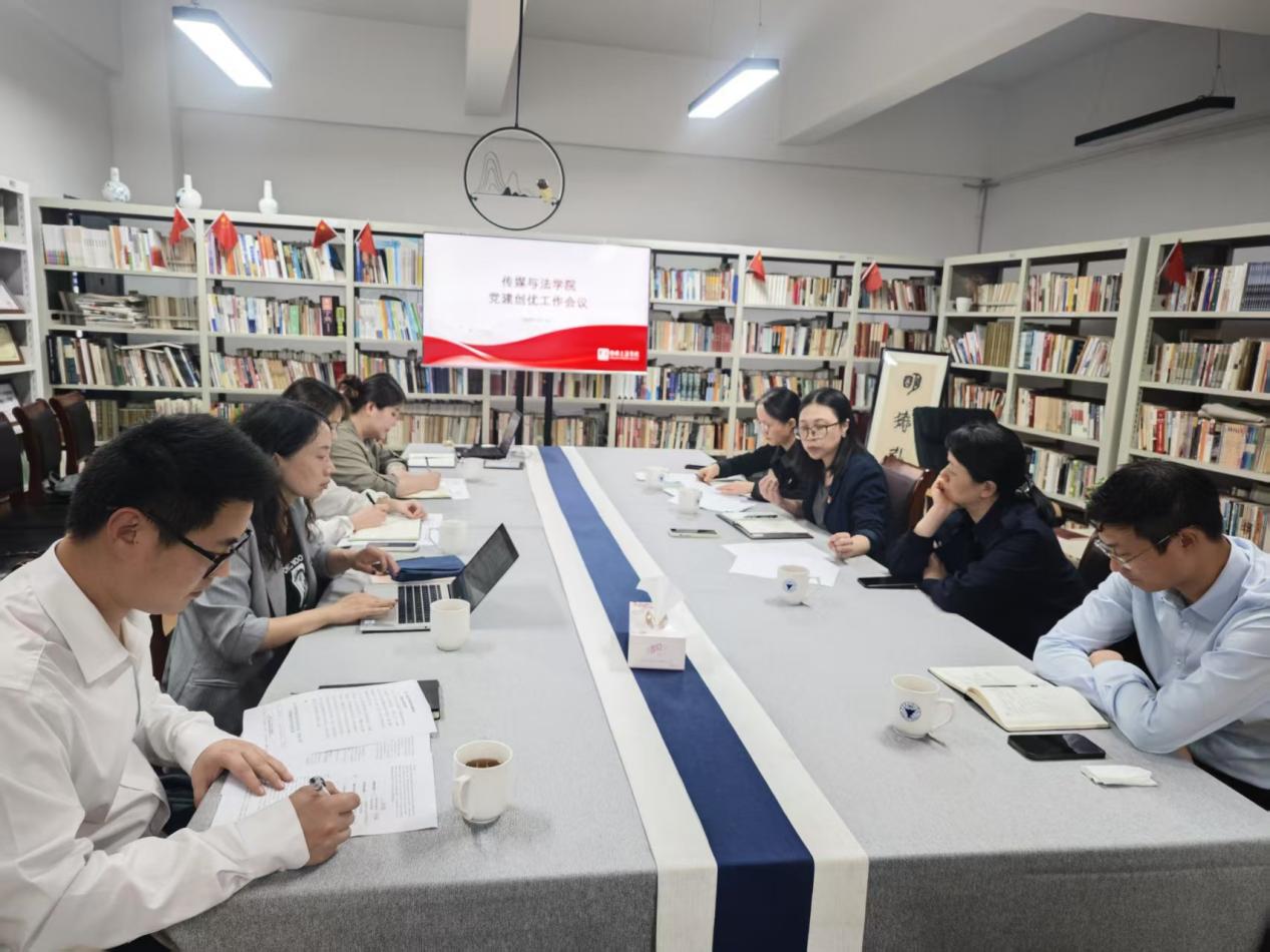 在党支部建设情况汇报环节,学院各党支部书记依次发言,围绕组织生活规范化、党员教育管理、特色品牌活动等维度,总结阶段性成果并剖析现存问题。法学教工党支部和法学学生党支部围绕普法宣传,服务地方法治建设;传媒教工党支部强化党建引领,通过高质量党建推动高质量发展,学科建设硕果累累;新传学生党支部利用专业优势开展学生实践,思政类视频作品获得多项荣誉;网新学生党支部寻找到国防教育特色领域,推进大中小学思政一体化取得一定成绩。