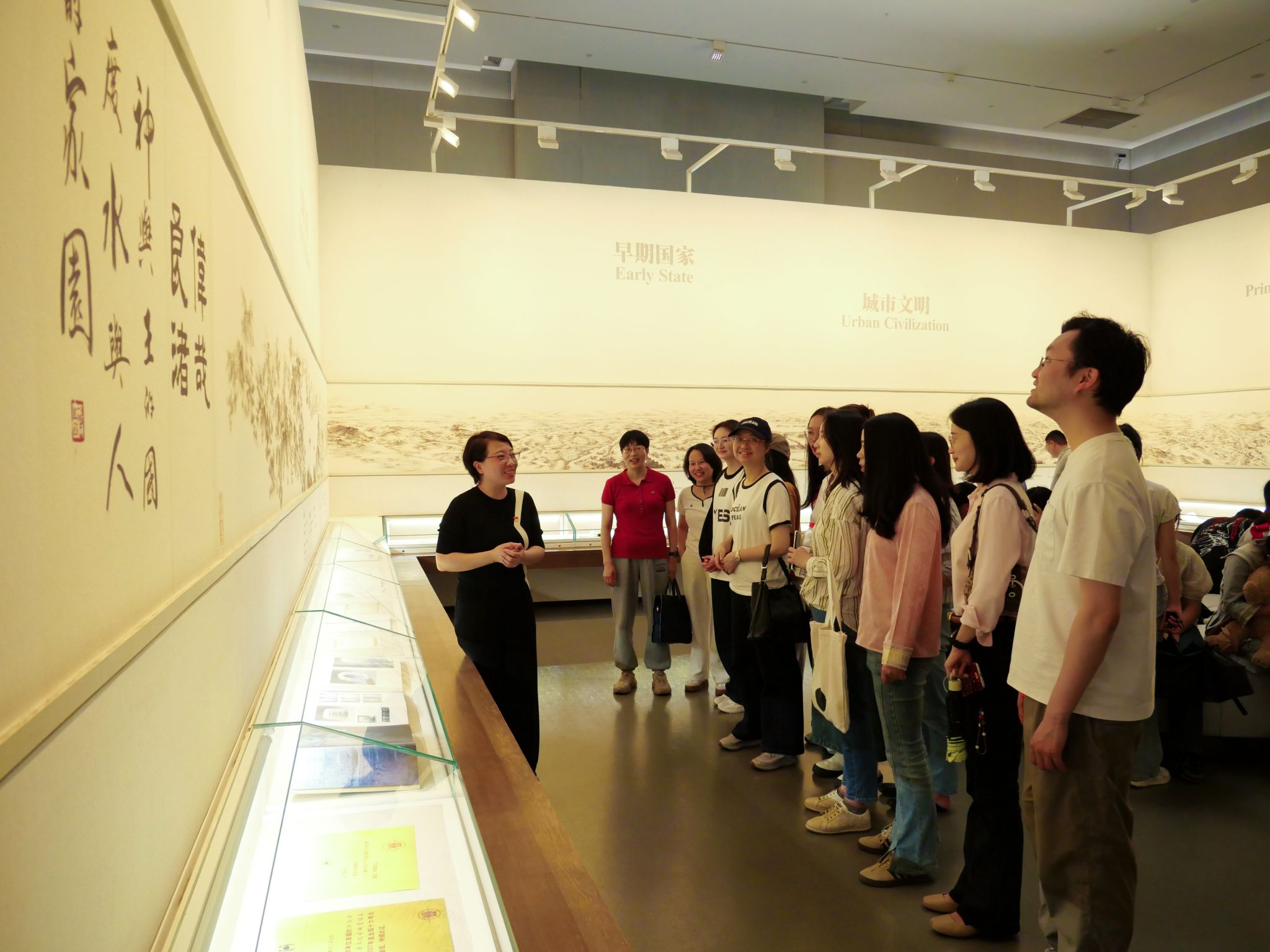 在良渚博物院,学院党员和教职工参观了水乡泽国、文明圣地、玉魂国魄三个展厅,全面地了解良渚遗址和良渚文化的考古成果、遗产价值。参观过程中,支部书记张宇泓结合良渚文化的历史意义,为大家上了一堂别开生面的党课。党课指出,良渚遗址是中国五千年文明史的关键实证,以其宏大的城址、复杂的水利系统和精美的玉器,展现了东亚地区早期国家的成熟形态,被列入世界遗产名录。它不仅揭示了中华文明起源阶段的社会组织与信仰体系,更通过玉礼器等文化元素,为夏商周乃至后世中华文明“多元一体”格局奠定了重要基础,成为探索华夏文化基因的核心源头之一。
