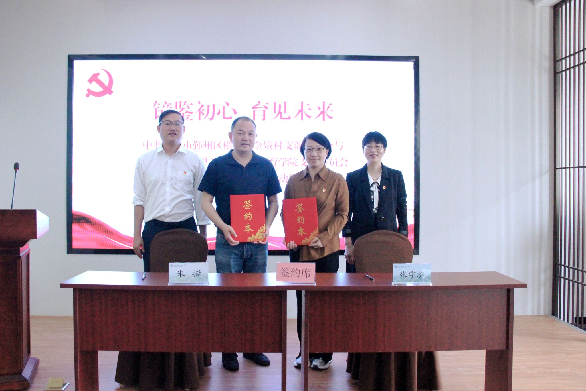 签约仪式上,朱挺与张宇泓代表双方支部签署党建联建协议,此次合作代表双方将在党员教育、乡村振兴等领域深度融合,也是学院“一键三联”党建品牌建设的重要开端。“一键三联”以党建引领为核心,通过党建联建、思政联通、校友联动,打造学院实践育人新格局,乡村振兴新引擎,高质量发展共同体。