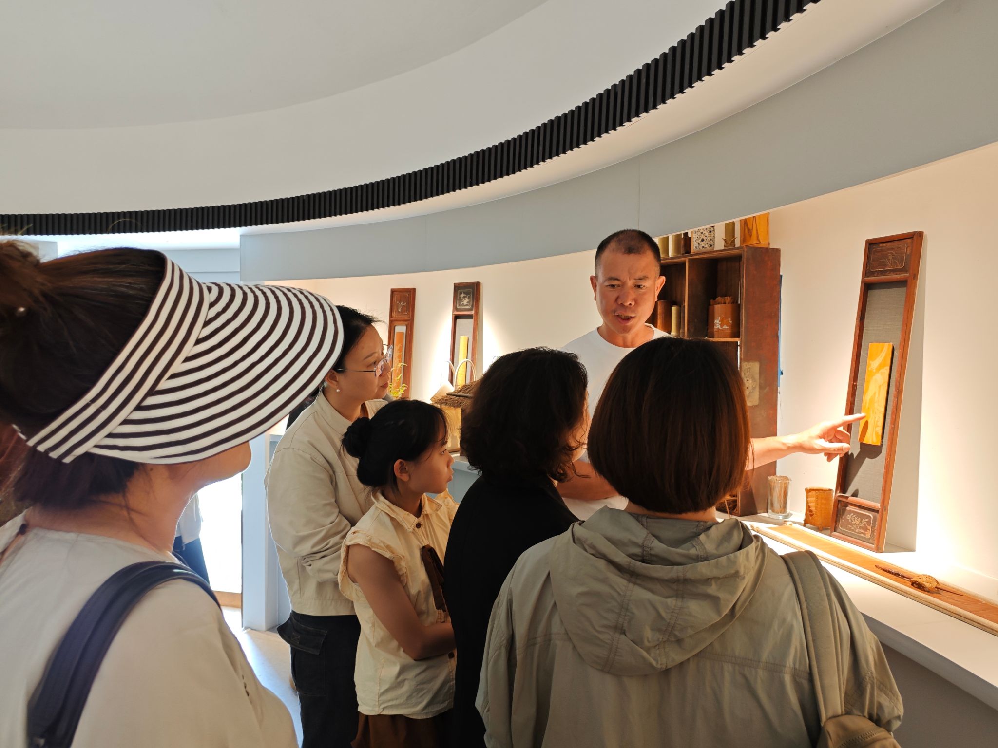 随后,党支部一行前往茅洋乡综合文化站——竹文化馆。在王群艺术大师的精彩介绍下,大家深入了解了竹文化的历史渊源和艺术价值,感受乡村文化的独特魅力。竹文化馆内丰富的展品和互动体验,让党员们对乡村文化传承与创新有了更直观的认识,也激发了大家对乡村文化振兴的深入思考。参观过程中,茅洋乡副书记黄薛栋表示,乡村振兴离不开高校的支持和参与,我们非常欢迎高校师生来到茅洋乡,将你们的智慧和创意带到乡村,与我们携手共建,形成更多可看、可品、可感的乡村文化建设成果。黄书记的讲话充满了对高校合作的期待与支持,让在场的党员们深受鼓舞,也更加明确了高校在乡村振兴中的责任与使命。