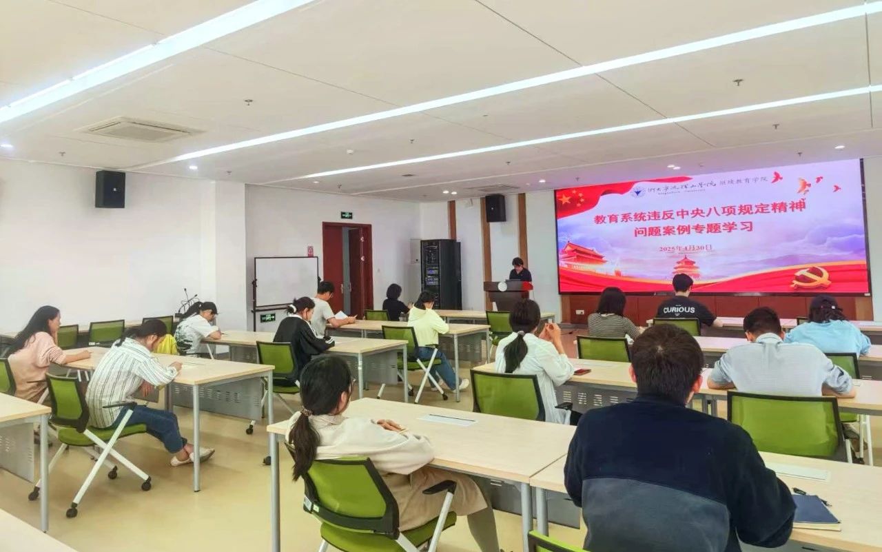 为深入贯彻落实中央八项规定精神,强化教职工廉洁自律意识及安全防护意识,近日,继续教育学院组织全体党员及教职工集中学习教育系统违反中央八项规定精神典型案例,并开展防诈骗、消防安全、食品安全等安全教育活动。