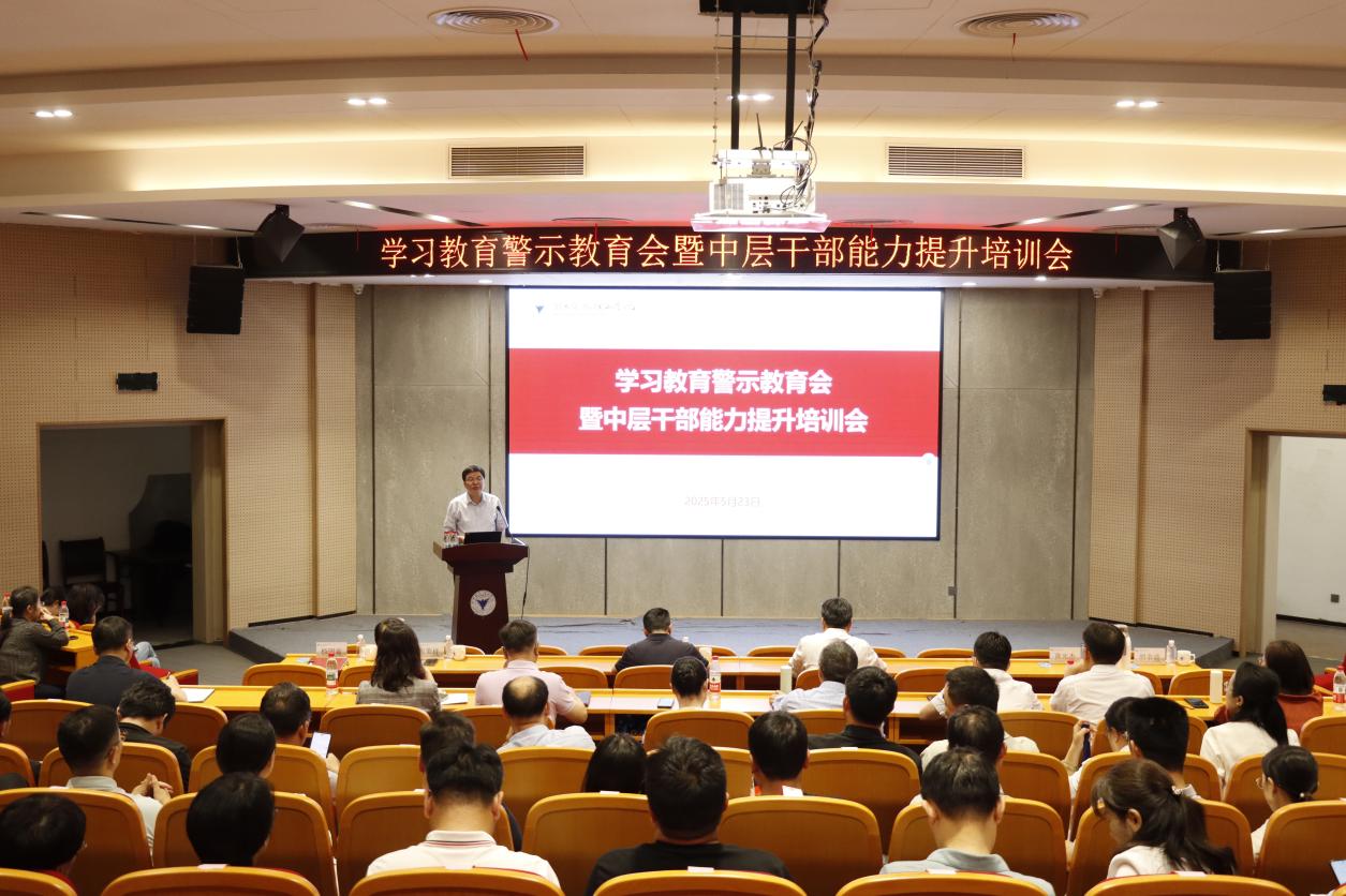 为扎实开展深入贯彻中央八项规定精神学习教育,充分发挥警示教育作用,加强领导干部作风建设,强化安全防护意识,2025年5月23日,学校召开学习教育警示教育会暨干部能力提升培训会。校领导以及全体中层干部、党支部书记等150余人参加会议。