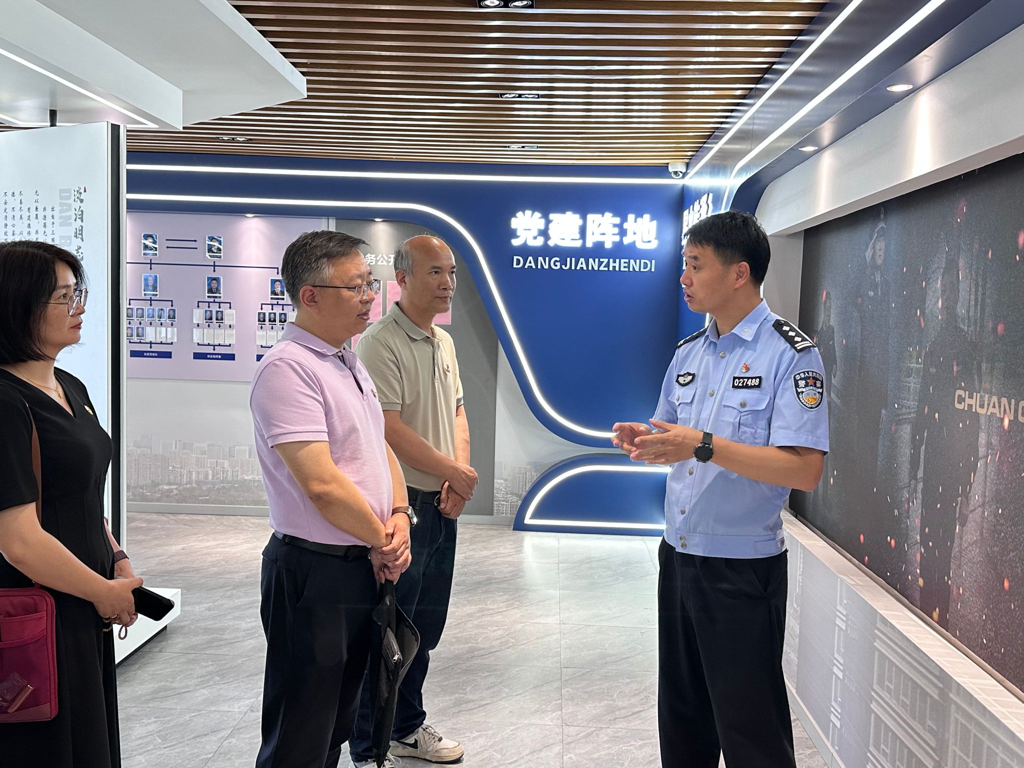 在姚军的陪同下,材料学院、学校安全保卫部代表参观了邱隘派出所文化长廊,详细了解了邱隘派出所辖区概况、历史沿革、荣誉模范及党建情况,并通过参观学习派出所廉政文化,上了一堂生动的廉政教育党课,促进了中央八项规定精神学习教育。
