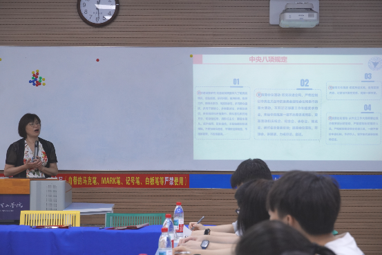 最后,围绕教务处、教学质量监控与评估中心、创新创业中心三个部门的工作,沈昊宇向在场师生党员解读了贯彻“人才培养全链条”理念,以及围绕“学生中心”服务人才培养的具体举措。也勉励师生要在人才培养工作中切实把八项规定精神落到实处,以优良的作风推动单位各项事业高质量发展,为实现党和国家的发展目标贡献力量。