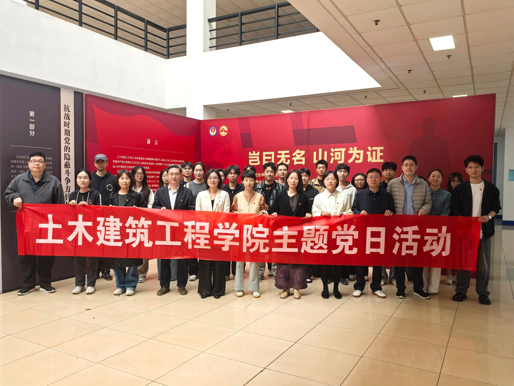 近期,“岂曰无名,山河为证”——纪念中国人民抗日战争暨世界反法西斯战争胜利80周年党的隐蔽战线主题展在学校NC大厅一楼展出。为深入学习伟大抗战精神,凝聚奋进力量,10月24日下午,土建学院师生党员共同走进展览现场,感悟革命先辈的信仰之光,接受深刻的爱国主义教育和精神洗礼。