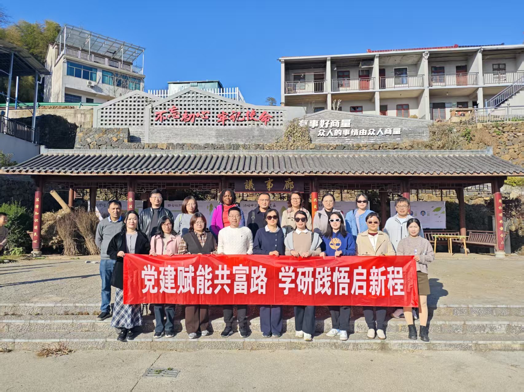 为深入学习贯彻党的二十届四中全会精神,探索党建引领乡村振兴的实践路径,11月29日,生物与化学工程学院组织教师党员赴新昌县东茗乡金山村开展主题党日活动,实地感受“党建联建”赋能共同富裕的生动实践。群山环抱的金山村,曾因“地无三尺平、田无半亩方”的地理困境,长期面临发展滞后的难题。近年来,村党支部锚定“红色根脉”强基工程,以党建创新破解发展瓶颈,创新组建“挂单奔富帮帮团”,通过党建联盟机制整合乡贤资源、企业力量与结对单位优势,精准盘活村内闲置劳动力、土地与房屋资源,成功打造“共富工坊集聚村”,让昔日的偏远山村蜕变为乡村振兴的示范样板。