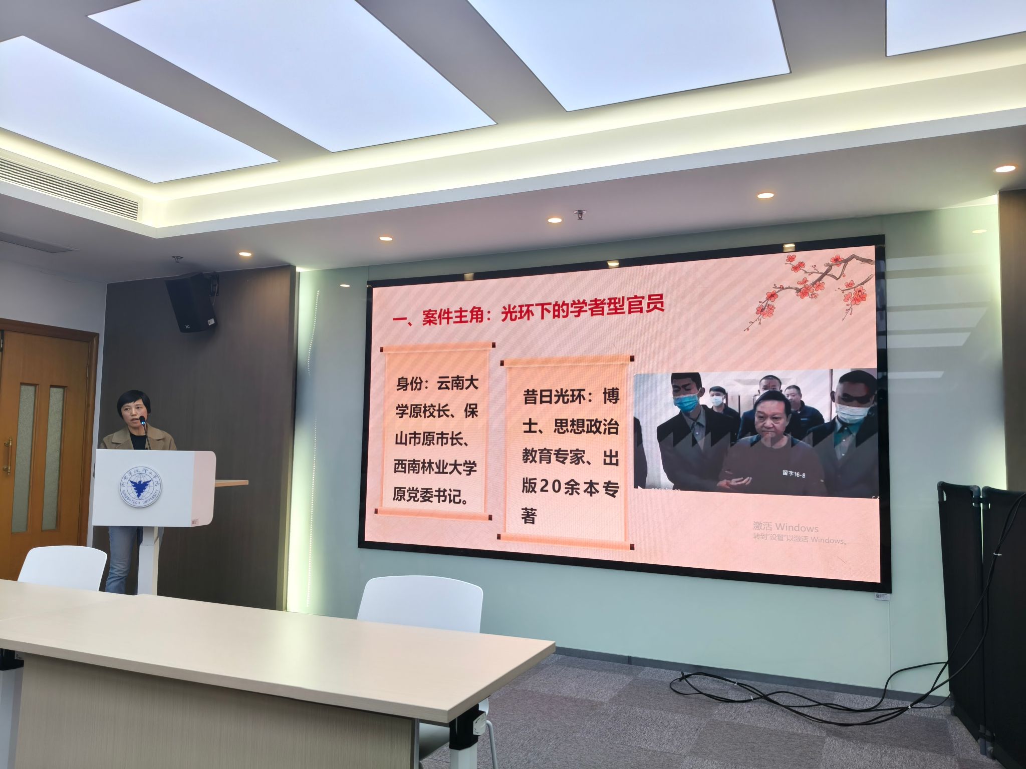 12月5日下午,马克思主义学院举行了警示教育专题活动,通过以案释纪、以案示警的方式,进一步强化学院教师的纪律规矩意识和廉洁从教观念。