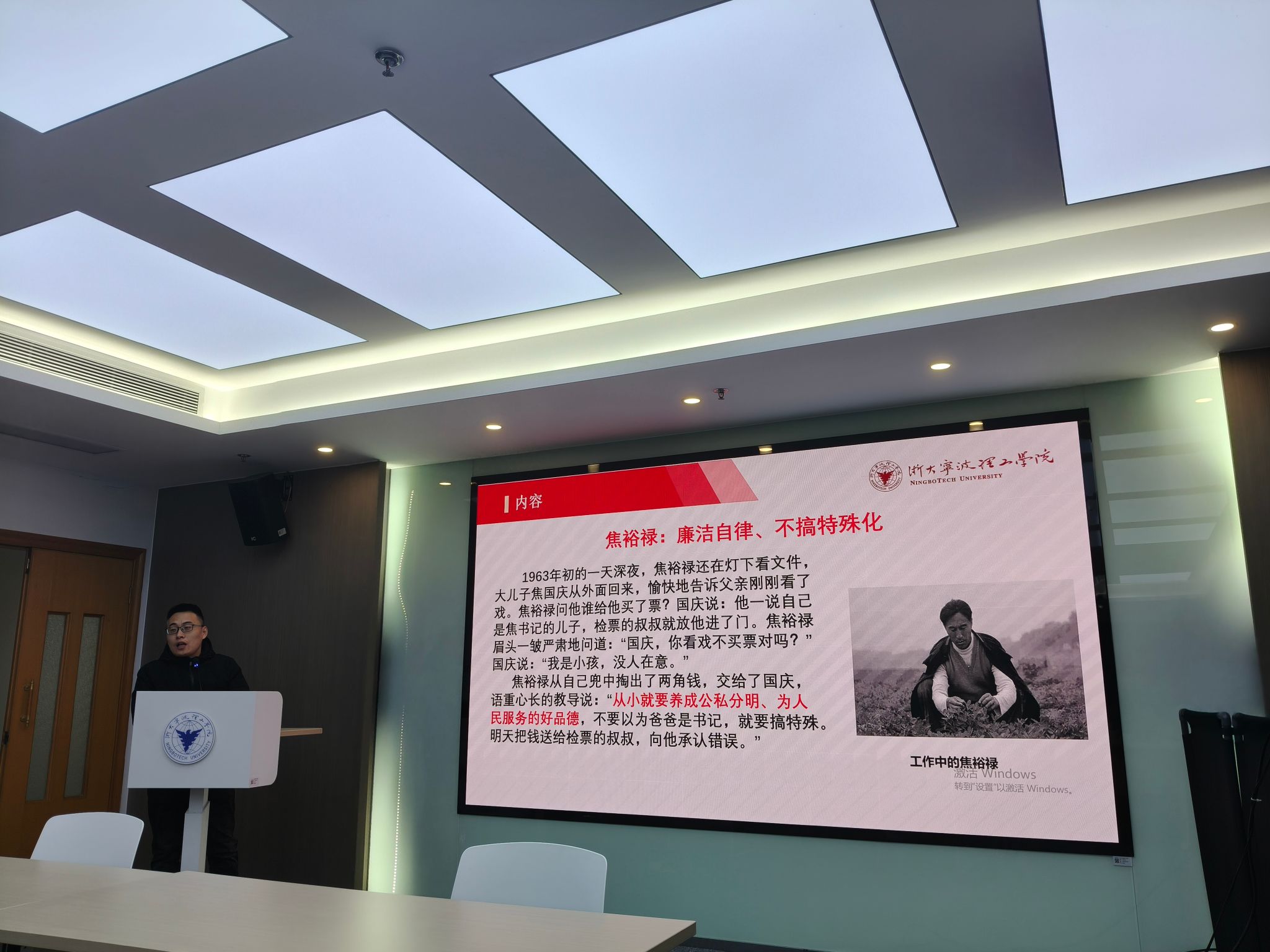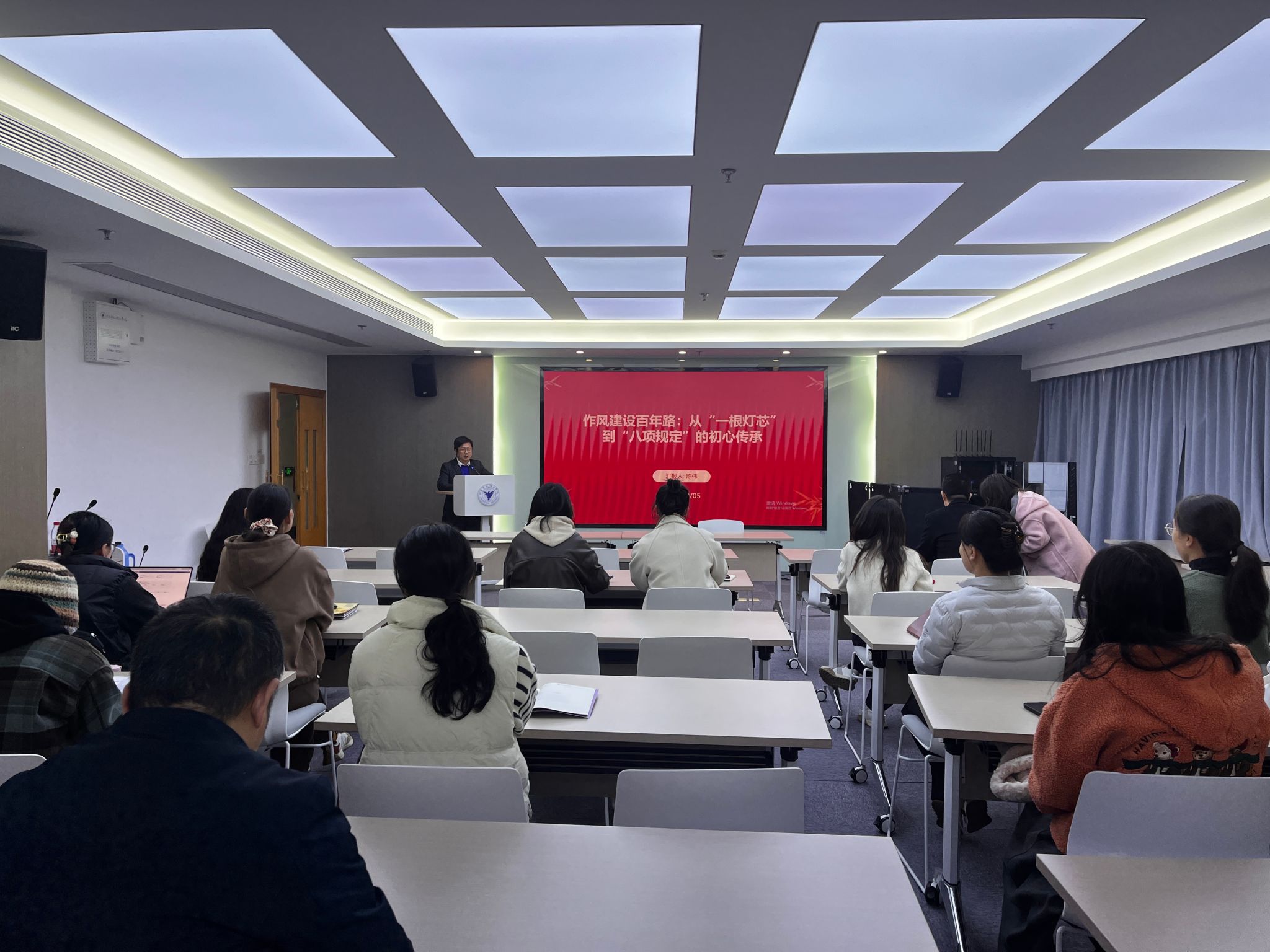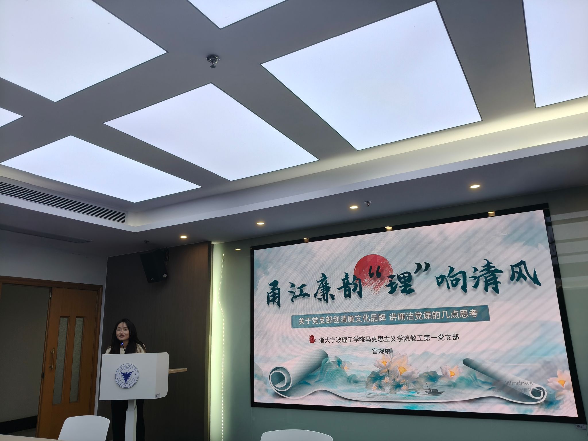 教工一支部的陈伟、宫婉琳两位老师分别围绕党的作风建设和廉洁文化建设开展了题为《作风建设百年路:从“一根灯芯”到“八项规定”的初心传承》《甬江廉韵 “理”响清风》的党课宣讲,系统回顾了党在不同历史阶段始终坚守的清廉本色与纪律要求;教工二支部的陈辉和潘文鸯两位老师分别围绕党史中的廉洁故事和浙江大学竺可桢老校长的廉洁故事开展了题为《党史中的廉洁故事及启示》《弘扬“思正”清风:从竺可桢校长廉洁故事谈起》的党课宣讲,他们结合党史中的廉洁故事及高校实际,探讨了思政教师队伍如何夯实廉洁思想根基、将清廉理念有机融入教育教学全过程。