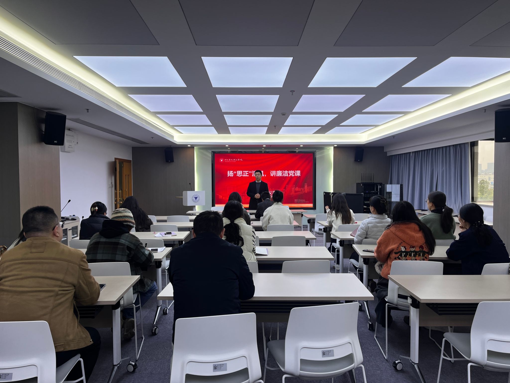 12月5日下午,马克思主义学院举办“扬‘思正’清风,讲廉洁党课”活动。活动由学院党委副书记、纪委书记任凯主持,学院全体教师党员参加。