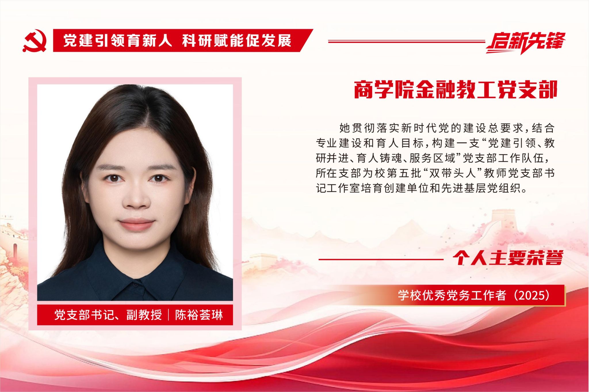【启新先锋】商学院金融教工党支部 党支部书记、副教授丨陈裕荟琳